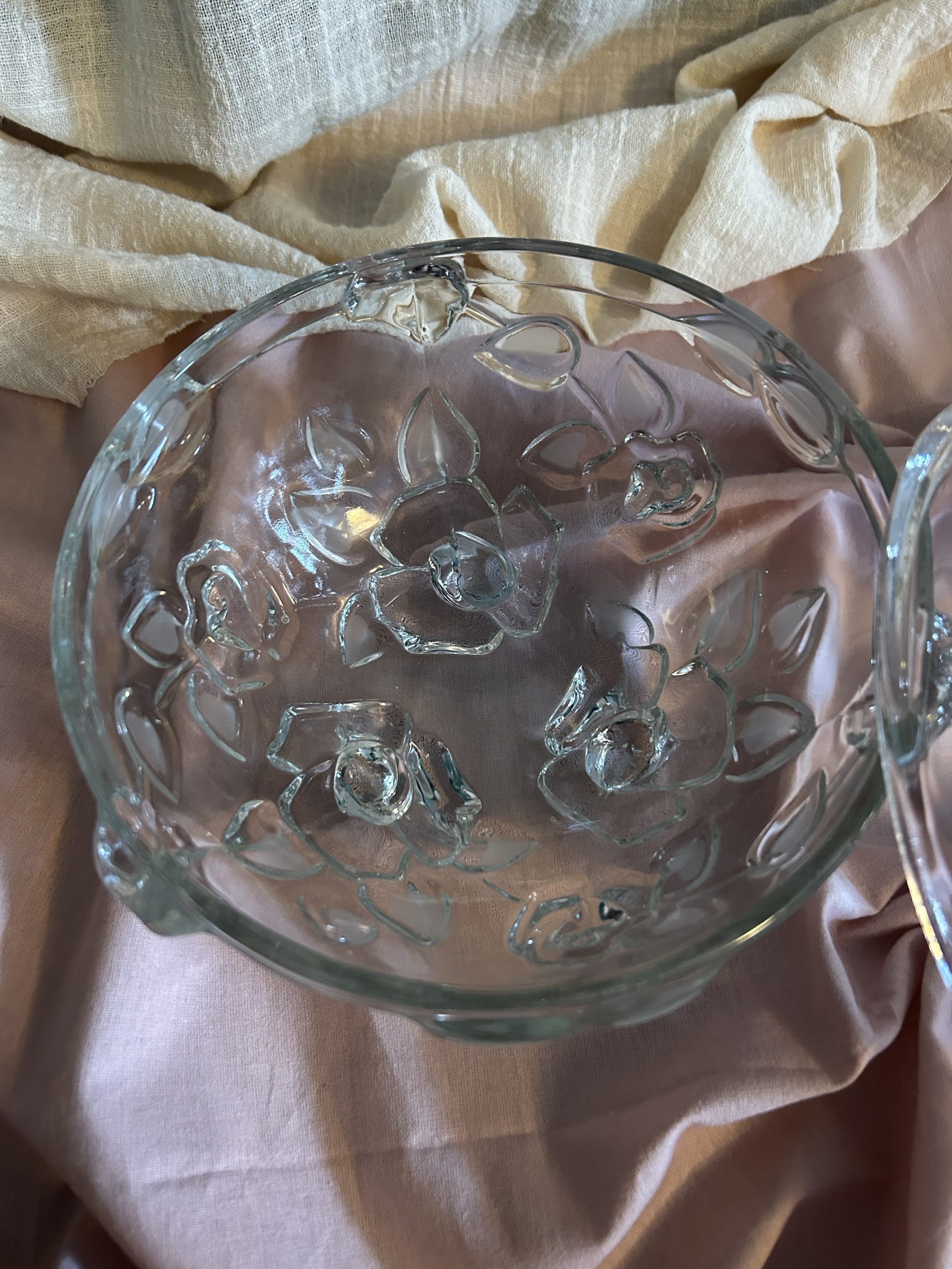 Bonbonnière sur pieds avec fleurs en relief